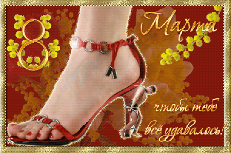 Открытка с 8 Марта.Женская ножка открытки картинки гиф смайлики скачать. 8 Марта Международный женский день. Поздравления Открытки Праздники марта